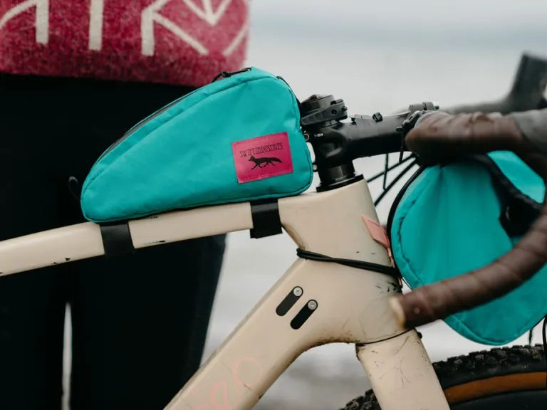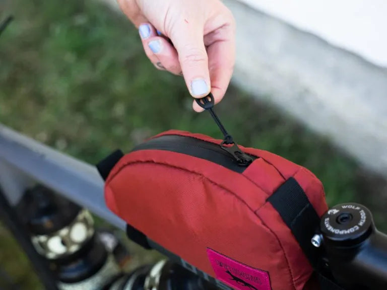The small-but-mighty Moxie Top Tube Bag is sure to be a permanent accessory on your trusty, two-wheeled steeds where it tucks nicely into the nooks and crannies of your bike. This secure bicycle top tube bag puts essentials like snacks, gloves or your phone at arm’s reach and just a zipper pull away. A dream cockpit set-up combines the Moxie Top Tube Bag with Sidekick Stem Bag or the Gibby Stem Bag.